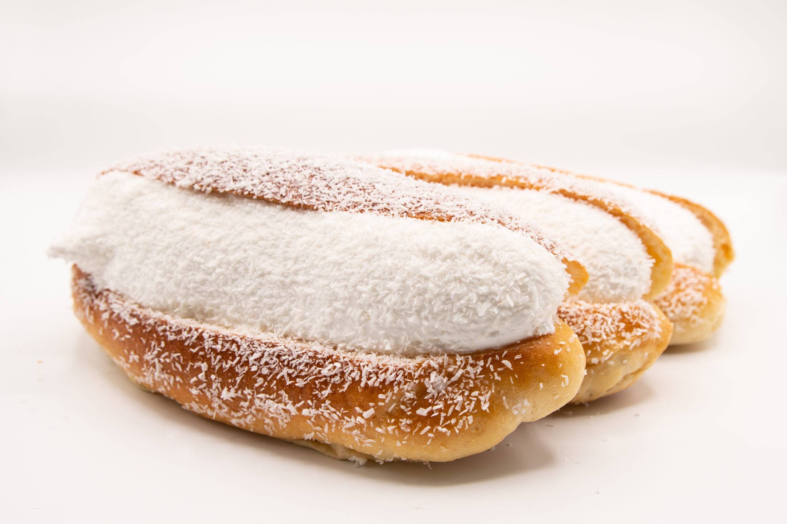 Masa bollería, relleno de merengue y baño de coco rallado. 130 gr.
