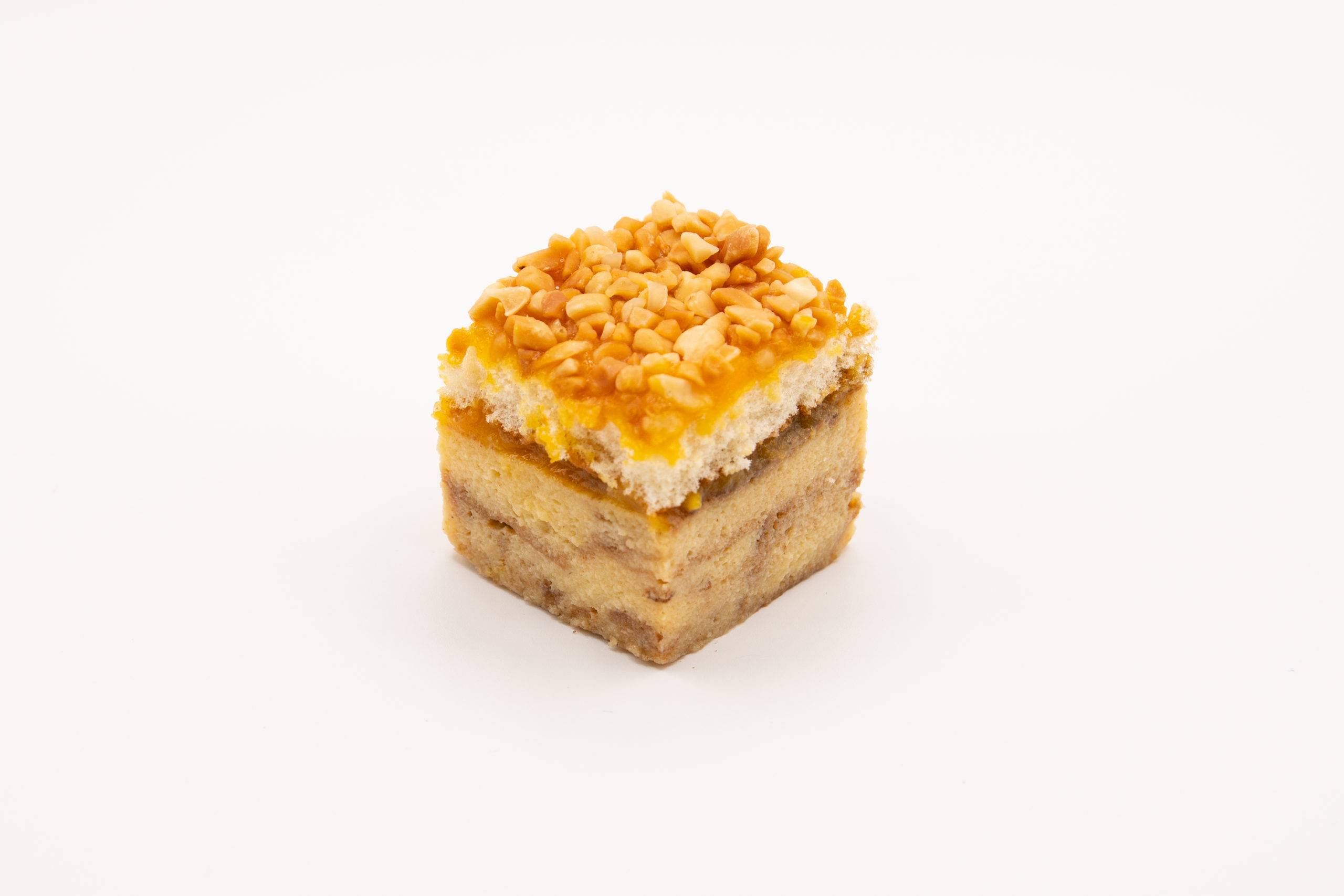 Bizcocho, pan de calatrava, crema y crocanti de almendra. 85 gr.