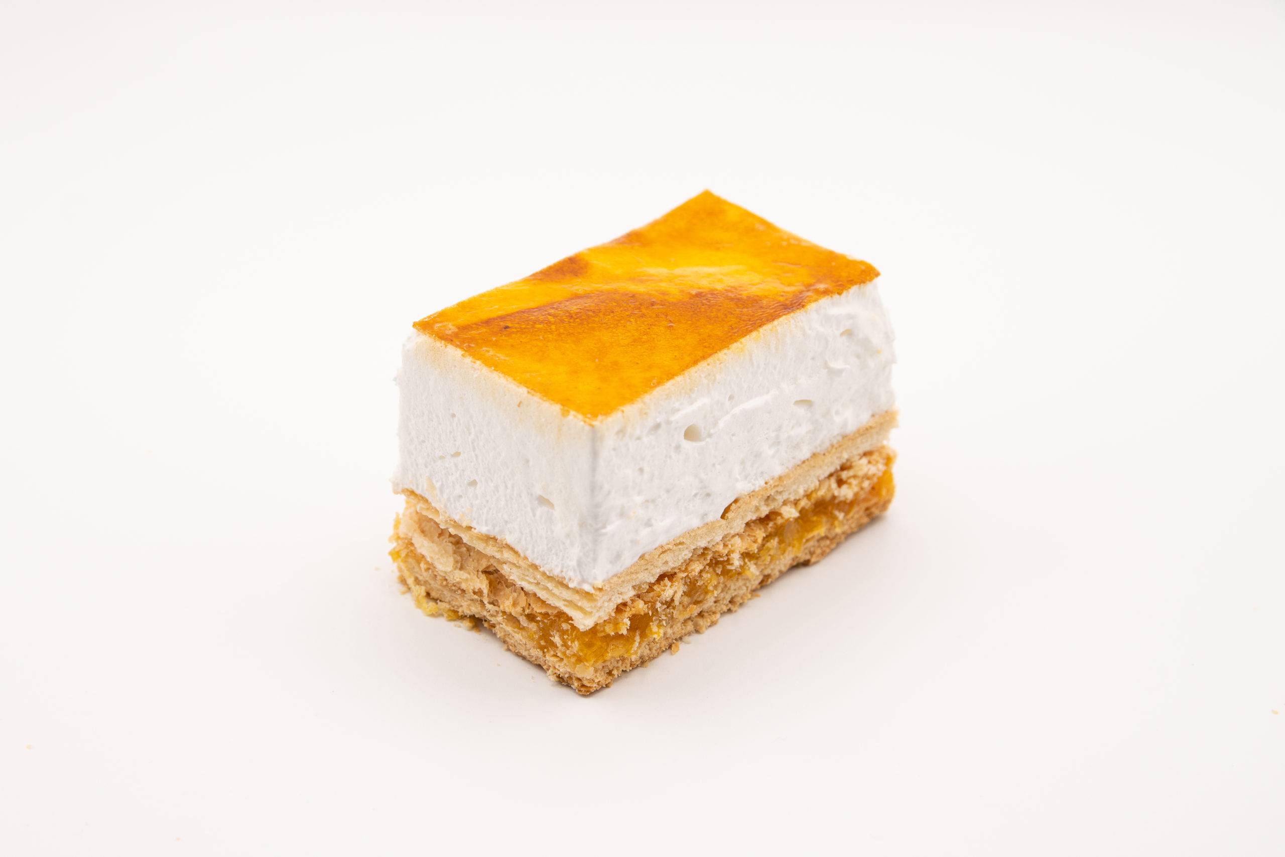 Hojaldre, merengue quemado, cabello de ángel y crema. 90 gr.