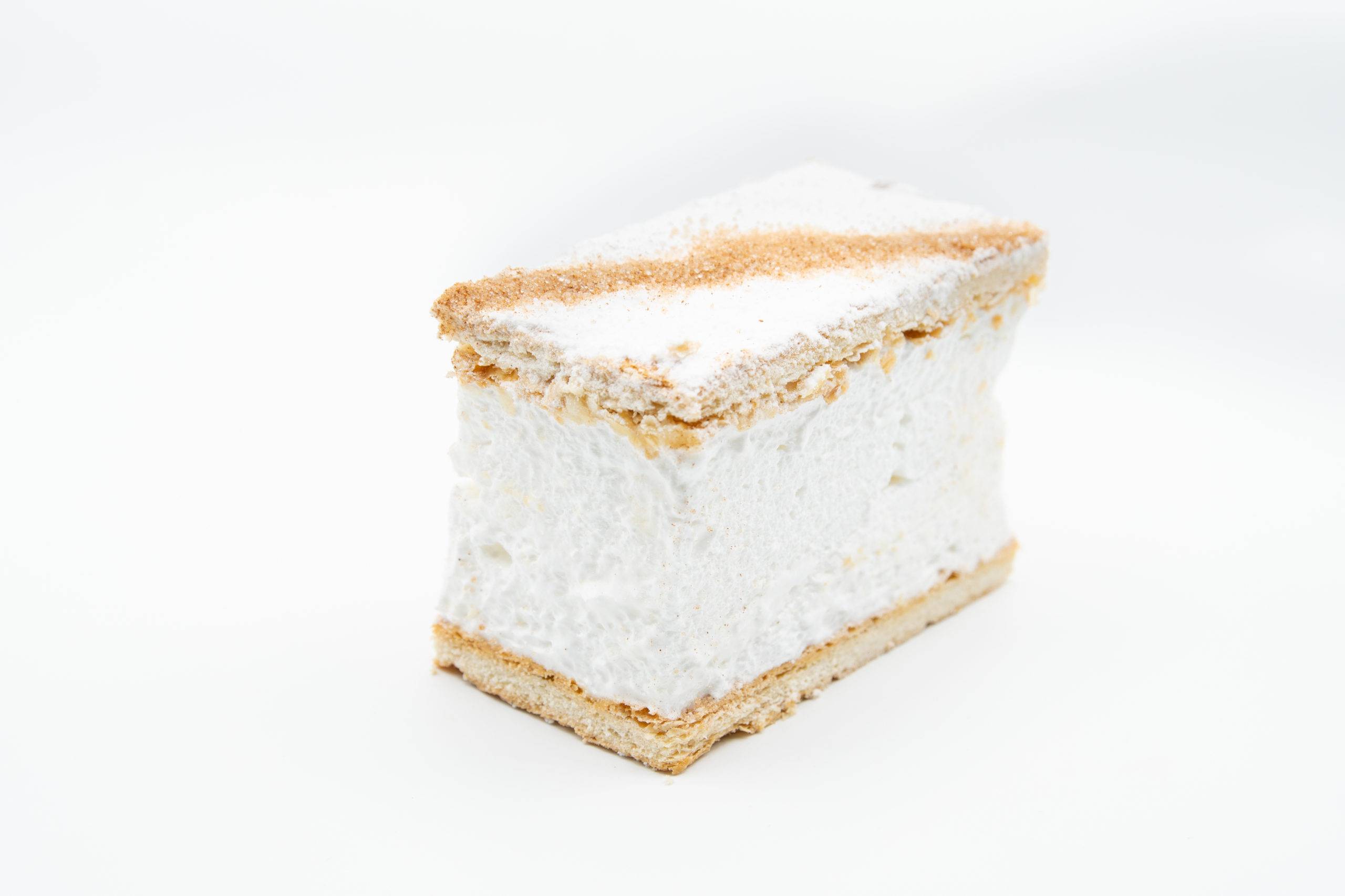 Hojaldre, merengue, baño de azúcar glas y canela. 100 gr.