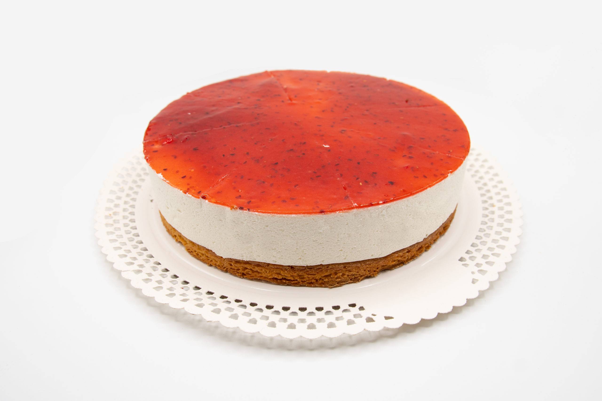 Base pasta brisa, mousse de queso y crema frambuesa. 1 Kg Aprox.