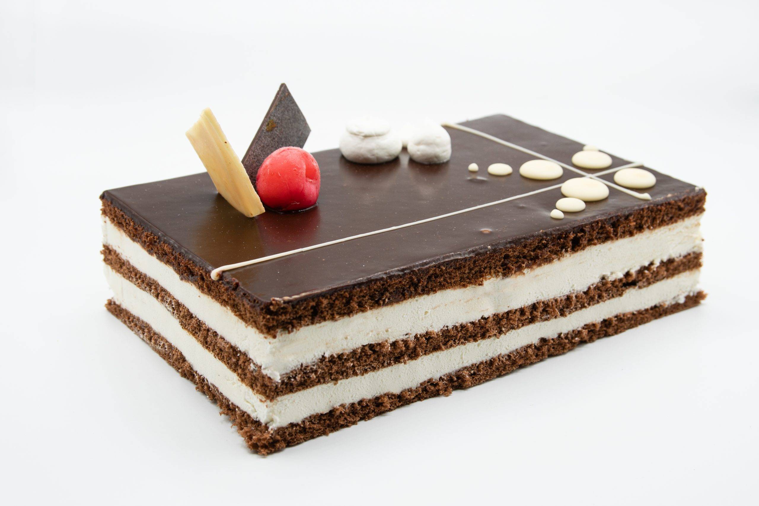 Bizcocho de chocolate, trufa blanca y baño de chocolate. Peso aprox: 1Kg.