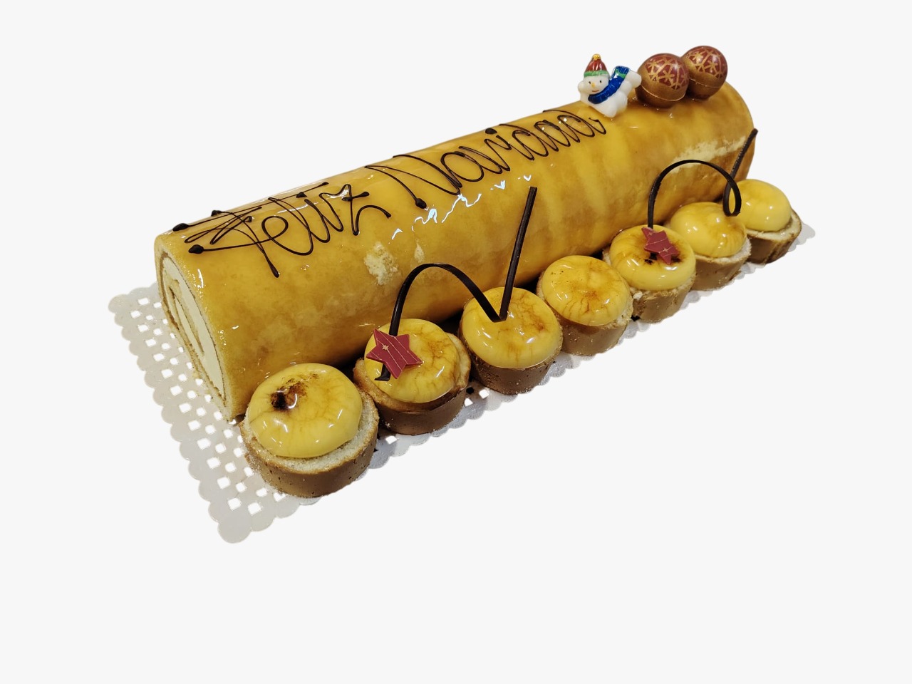 Mousse de vainilla con toque de canela, corazón de bizcocho con yema tostada y cubierto de yema. 700gr aprox.