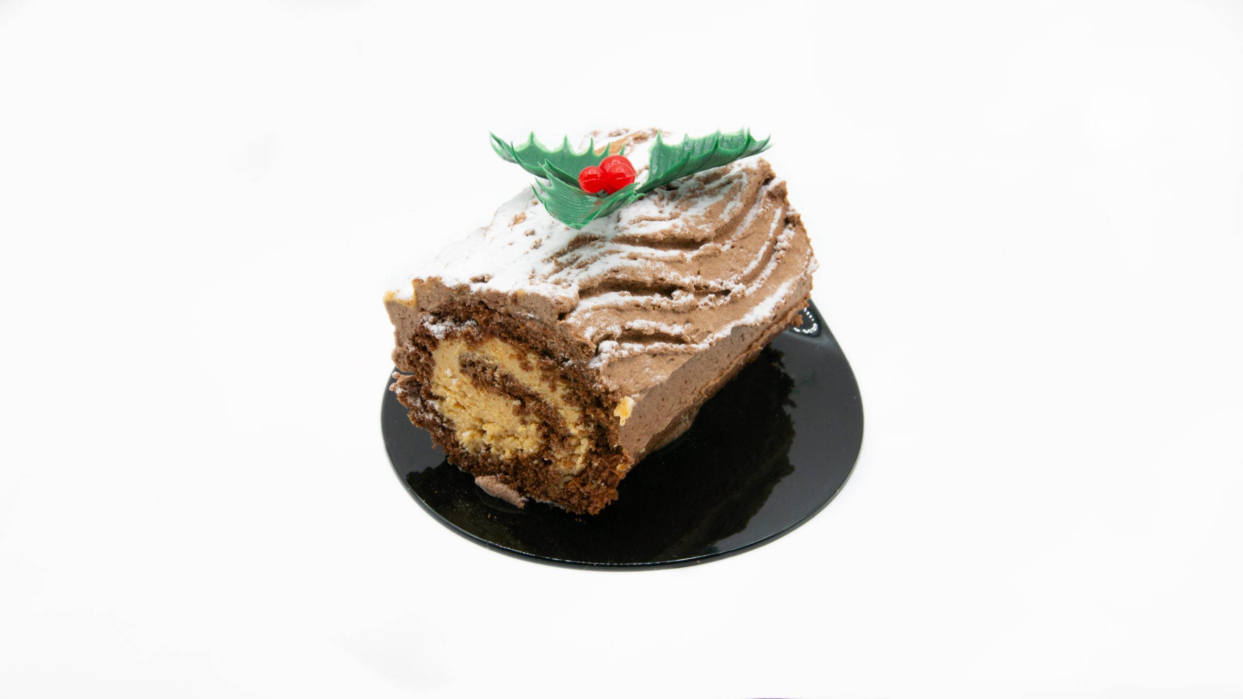 Bizcocho de chocolate, relleno de crema de turrón y cubiero de trufa. Producto unitario