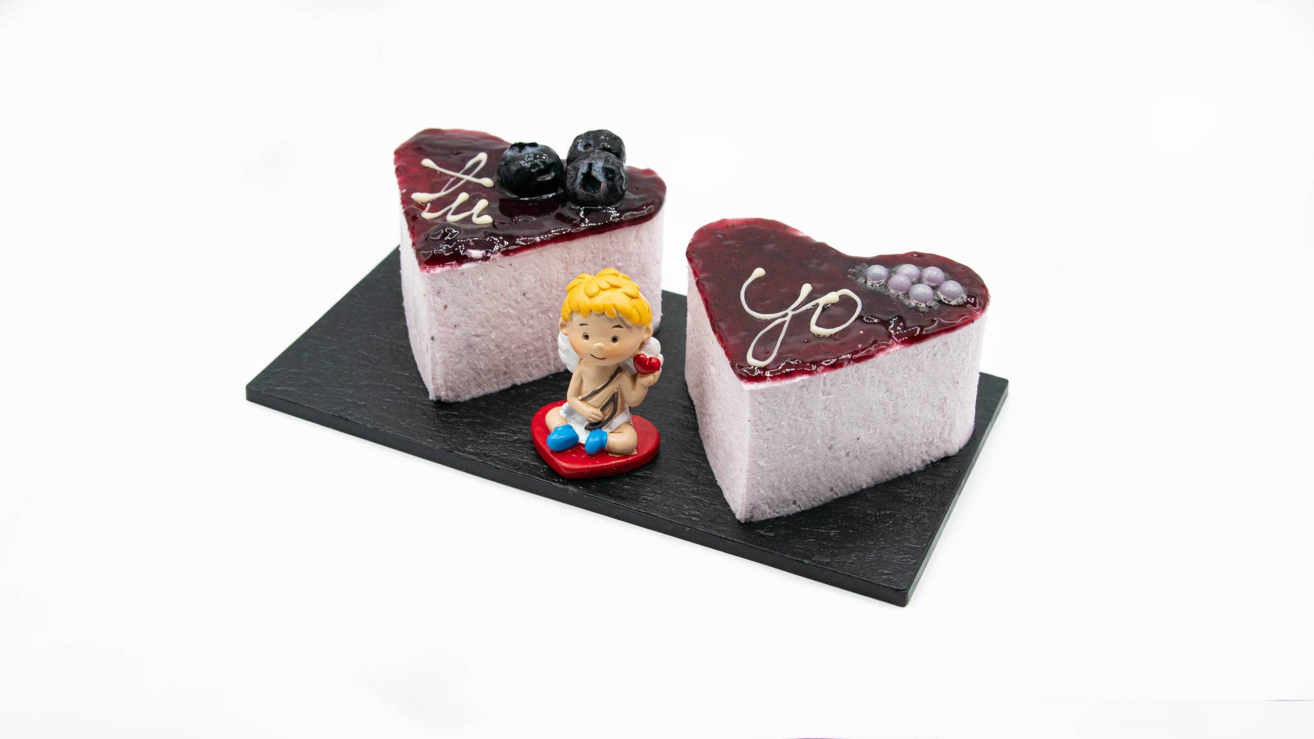 Mousse de yogurt y arándanos con corazón de bizcocho